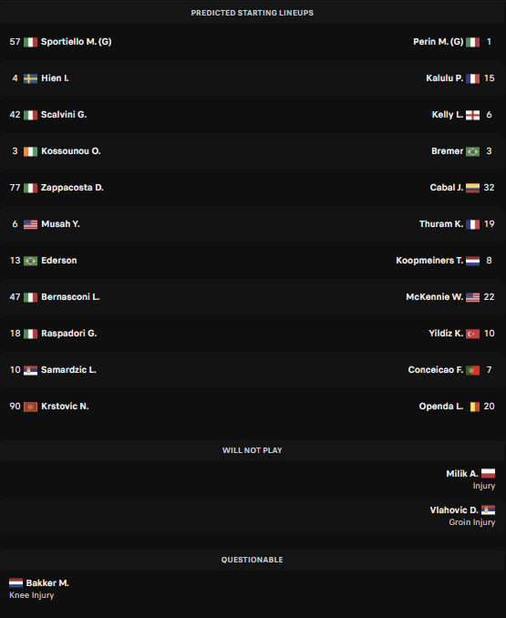 | A. Milik (JUV) | Injury | Lack of backup target-man; reduced second-half options. |